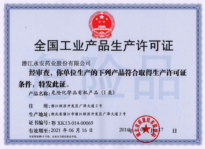 潛江永安藥業股份有限公司成立于2001年,坐落于江漢平原腹地潛江市國家高新技術產業開發區,占地500余畝,注冊資金貳億玖仟肆佰陸拾捌萬貳仟伍佰元整,是一家擁有自主知識產權的國家高新技術企業。公司股票于2010年3 月5日在深圳證券交易所掛牌上市(股票代碼為002365)。公司具有雄厚的技術開發能力,是湖北省創新型企業和湖北省知識產權建設示范企業。公司研發平臺分別被認定為省級企業技術中心和湖北省功能性食品添加劑工程技術研究中心。 經過多年的發展,公司形成了以食品及藥品添加劑牛磺